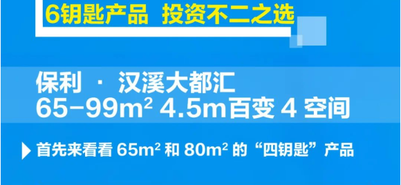 一套房分为4户的设计,大大减少了每户空间的公摊面积,加之设计师合理利用了走道上方的空间,超高的使用率,将整个空间*大化。对于投资者而言,“四钥匙”户型产品能够做到“一份投资,四份回报”,其投资价值之高,无需赘述了。看到这里如果你在感叹4钥匙产品的使用率攀升,收益率陡增,那么接下来的产品*会让你惊得大跌眼镜。保利汉溪大都汇还有杀手级产品,6钥匙户型!一份投资,六份回报!这是广州*个6钥匙产品!