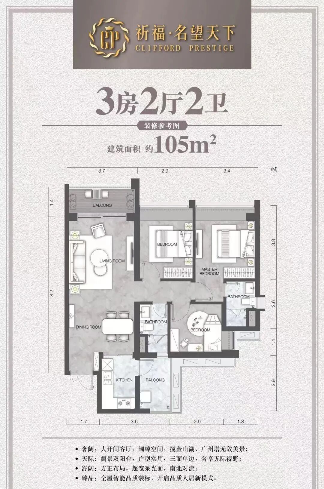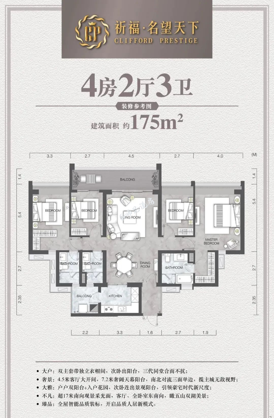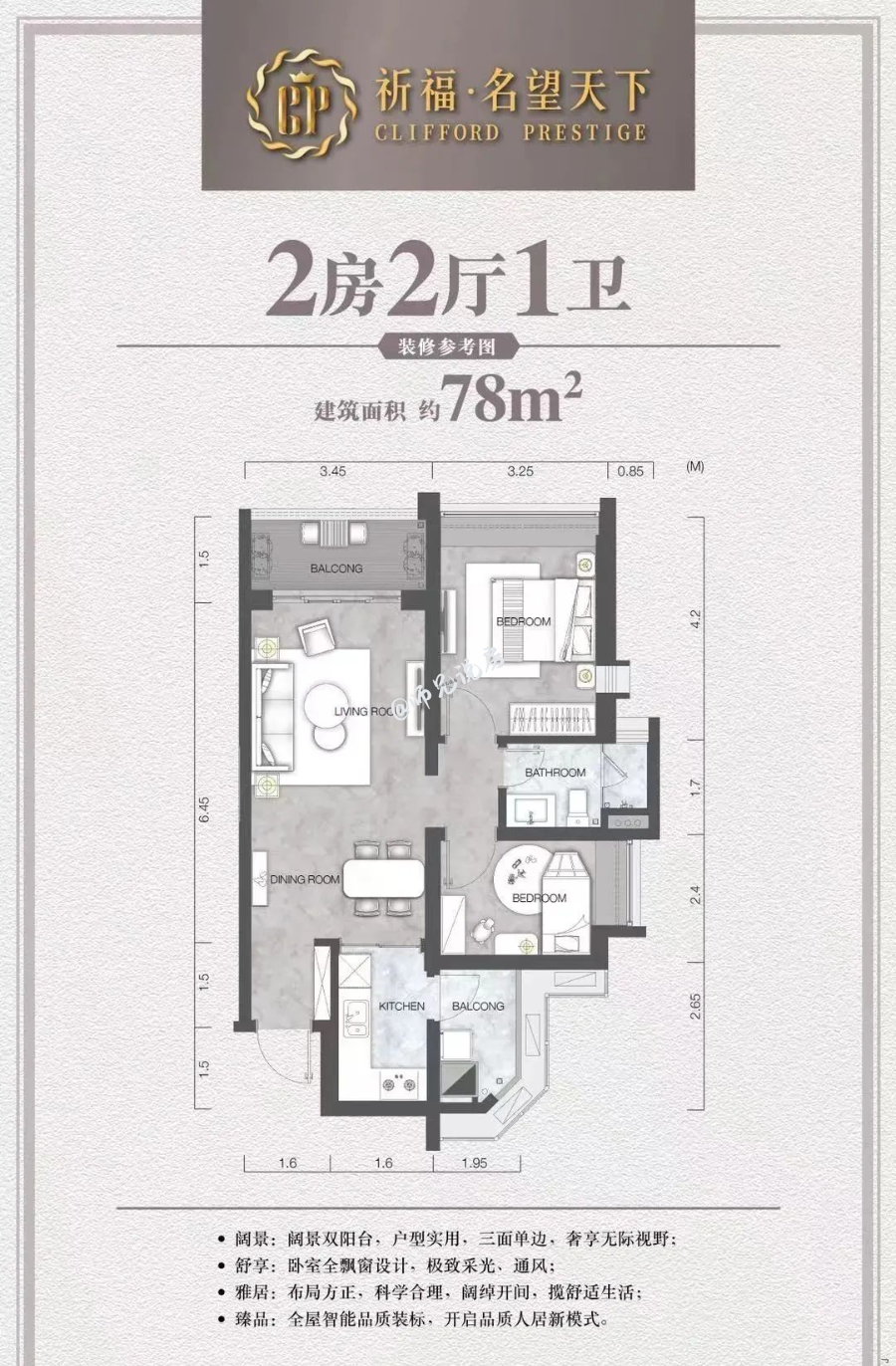 项目由祈福集团打造的*个*洋房豪宅,“祈福名望天下”楼高179米,刷新了华南版块住宅天际线。