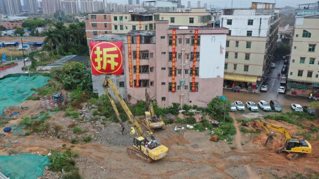为加快推动广州东部交通枢纽*项目建设及时完成项目征拆工作,近期,永宁街依法征拆84栋房屋。