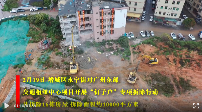 在今年2月,广州东部交通枢纽*项目开展拆迁“拔钉”行动大会,就已经拆除了16栋房屋,面积约10000平方米。