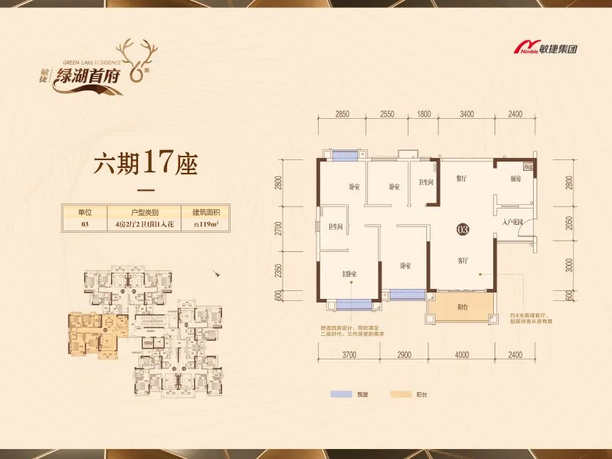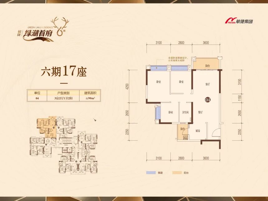 项目现主推建筑面积约70-102㎡二*四房洋房单位,总价低*102万元/套起。项目主推的70㎡两房、86㎡紧凑三房、96㎡舒适三房以及121㎡奢享四房不同面积段的户型,以满足刚需、刚改以及改善型不同种类的购房者。