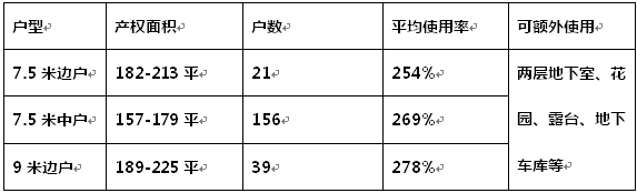 一期户型分7.5米边户、7.5米中户、9米边户三种户型产品。具体如下: