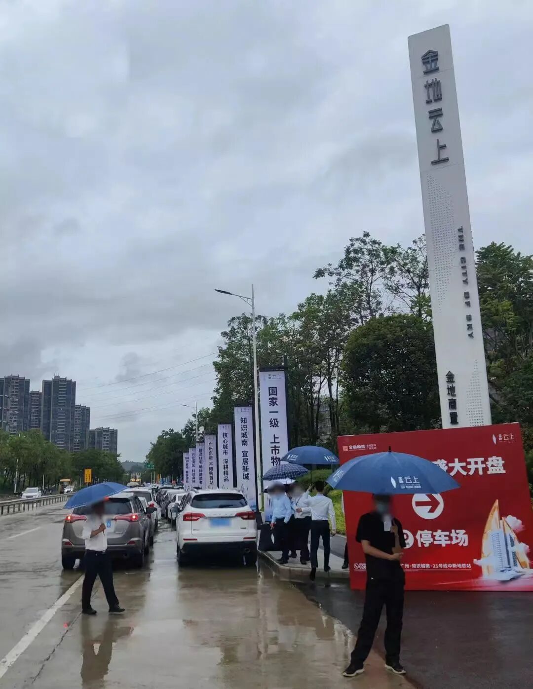 即使是台风天,依旧挡不住购房者看房的热情。金地云上营销*前停满了车辆,看房的人更是络绎不绝。