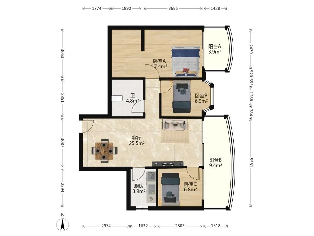 亮点好房编辑看过此房,面积为102㎡,为天河北少有闹中取静户型!