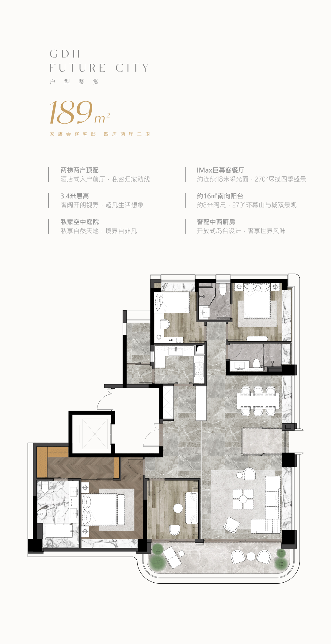 要说真正惊艳到楼市君的,还要数项目建面约189平大平层四房。