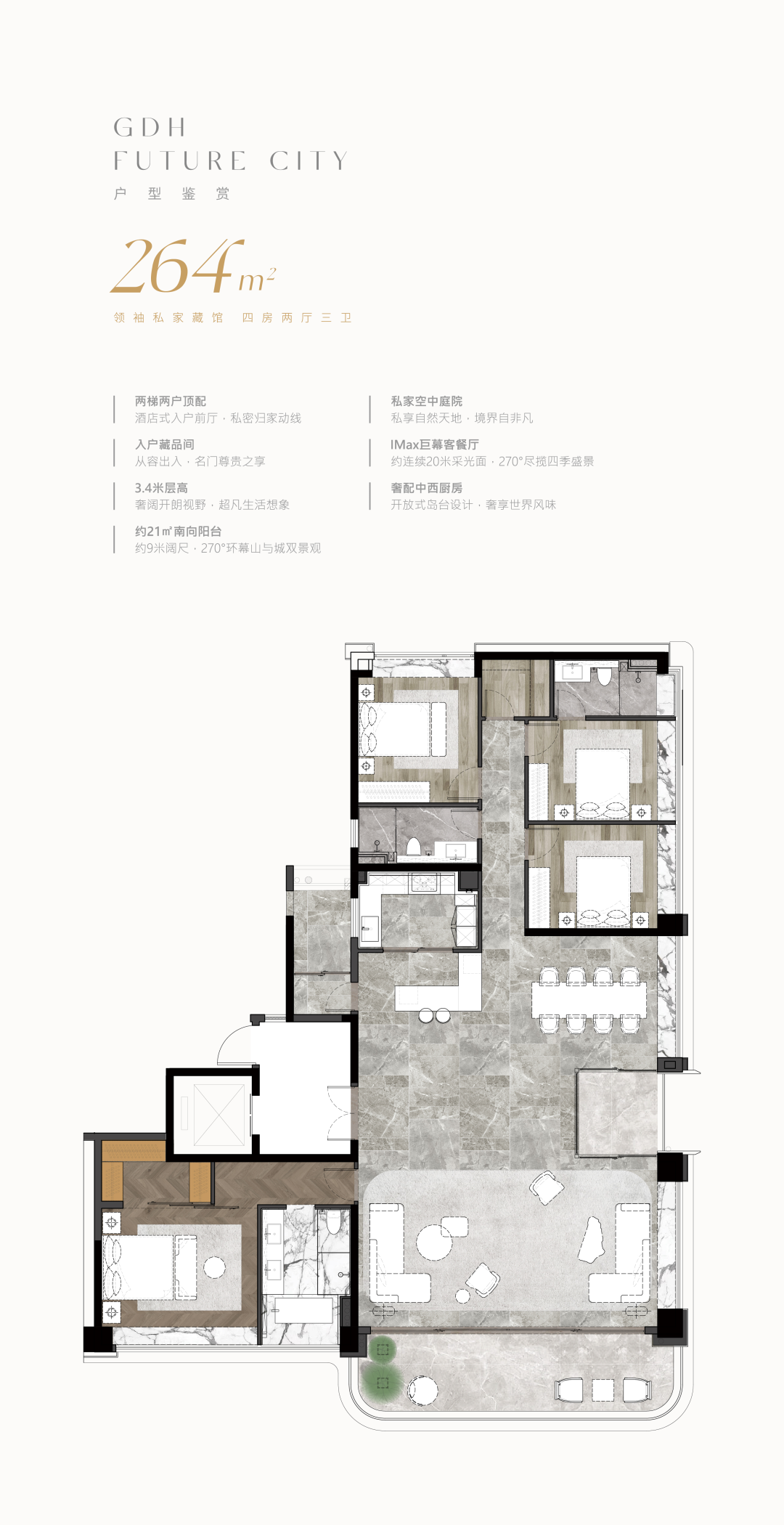 264㎡4房(可改5房),均价9.5-9.9万/㎡,需验资800万,