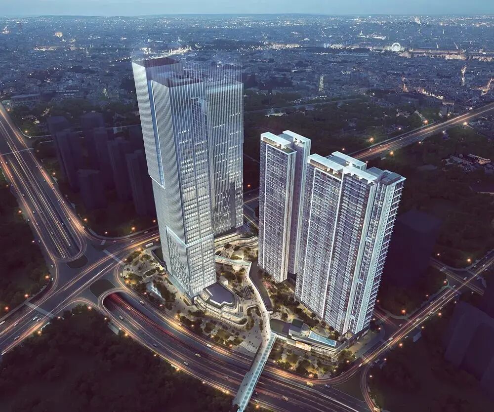 凯达尔枢纽国际广场包括东西两座塔楼、八层裙楼、四层地下室,其中东塔36层高约200米,西塔46层高约260米。