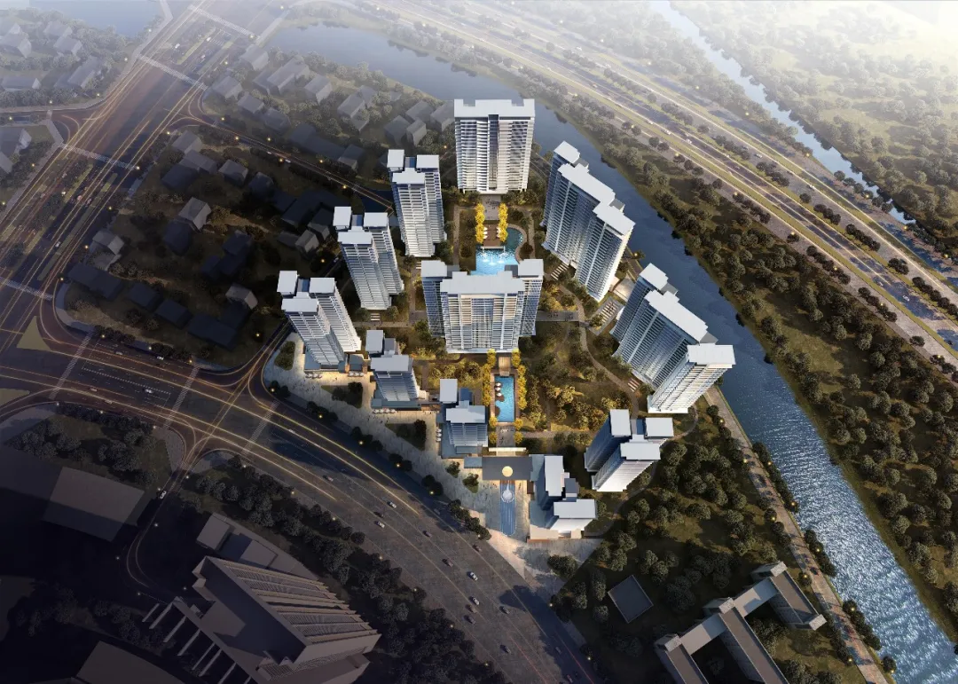项目总建筑面积约145000m²,规划建设高层住宅、配套商业、地下停车位配比超1:1.5。项目内部同时配备私人会所、游泳池及下沉园林等。