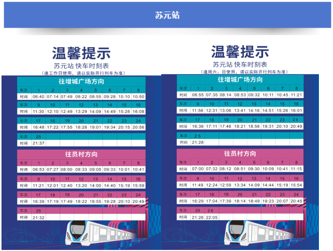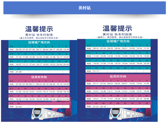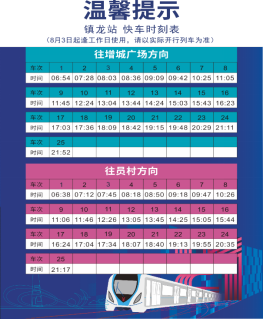 新的快车时刻表仍分为工作日和周六、日两个版本,新时刻表从8月3日起开始使用。快车实际到站时间会根据列车运行情况和客流情况有所调整。