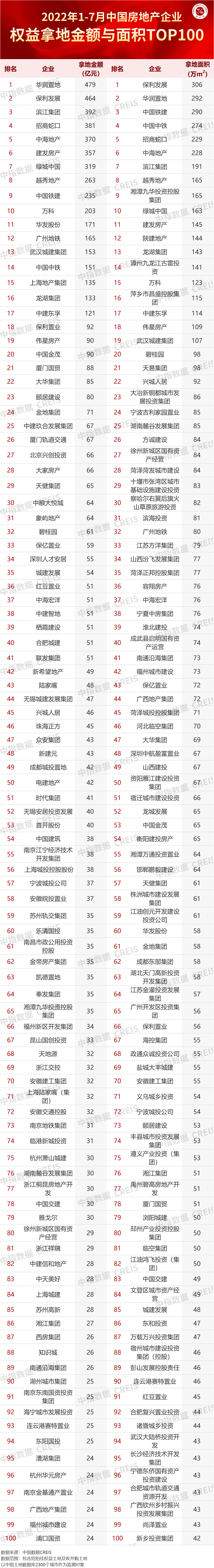 7月31日,据中指研究院,2022年1-7月,*100企业拿地总额8024亿元,拿地规模同比下降55.6%,降幅比上月收窄4.4个百分点。*100门槛值为24亿元,较上年同期下降21亿元,*100企业招拍挂权益拿地总额占全国300城土地出让金的比例为41.2%。