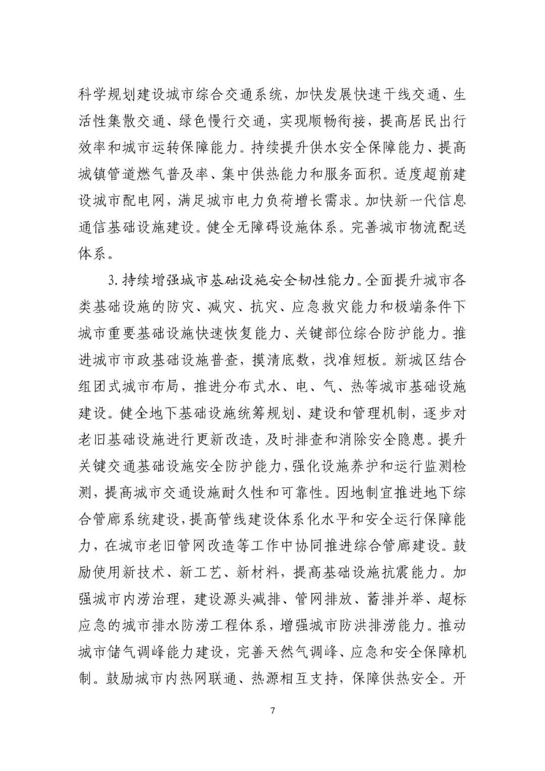一是推进城市基础设施体系化建设,增强城市安全韧性能力。