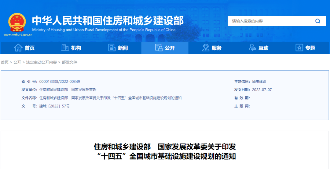 近日,经国务院同意,住房和城乡建设部联合国家发展改革委印发实施《“十四五”全国城市基础设施建设规划》(以下简称《规划》),对“十四五”期间统筹推进城市基础建设作出全面系统安排。