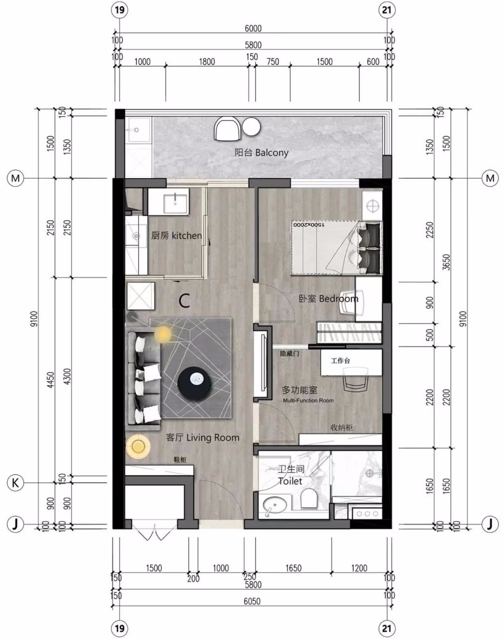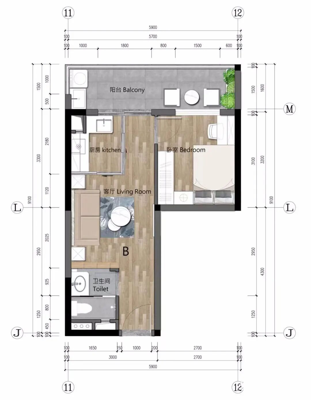 *小的48㎡单位,基本就是“一眼睇晒”的一房一厅,怎么看怎么紧凑,但卧室连阳台,应该比较舒适。