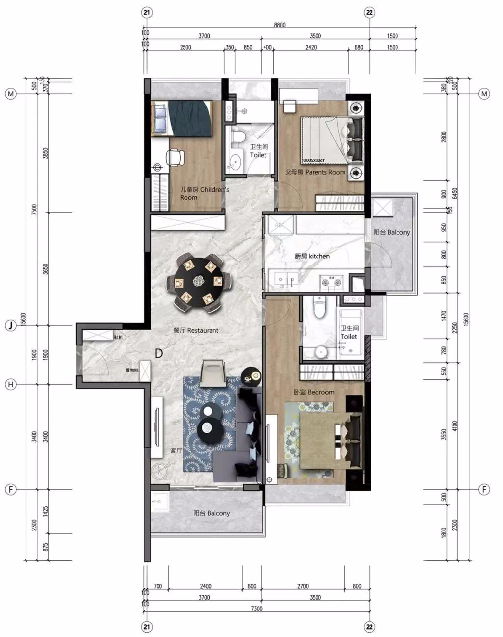 其余户型,还有86㎡两房(A)、63㎡两房(C)、134㎡三房(D)、79㎡(E)两房,各有特点,各位可以自行围观。