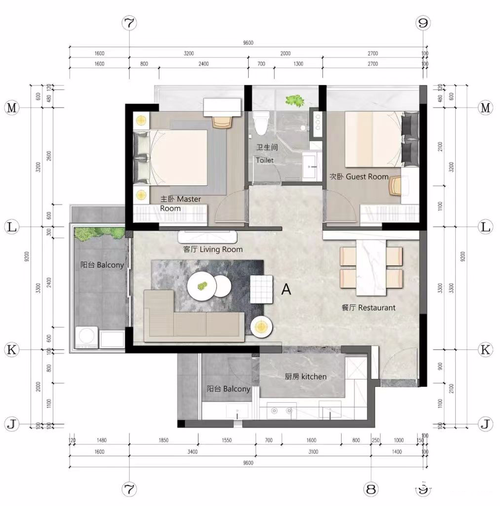 约5.7米阳台是亮点,但可惜朝西,傍晚下班回家客厅会很热。餐厅放在洗手间门口也是槽点之一。
