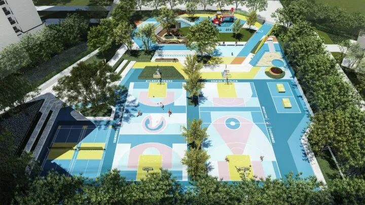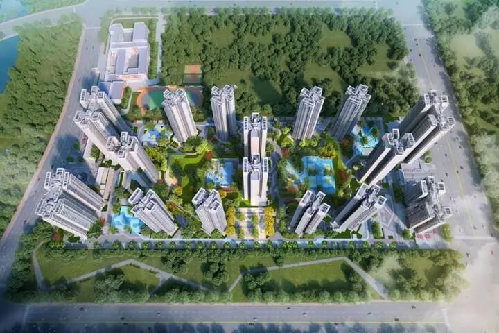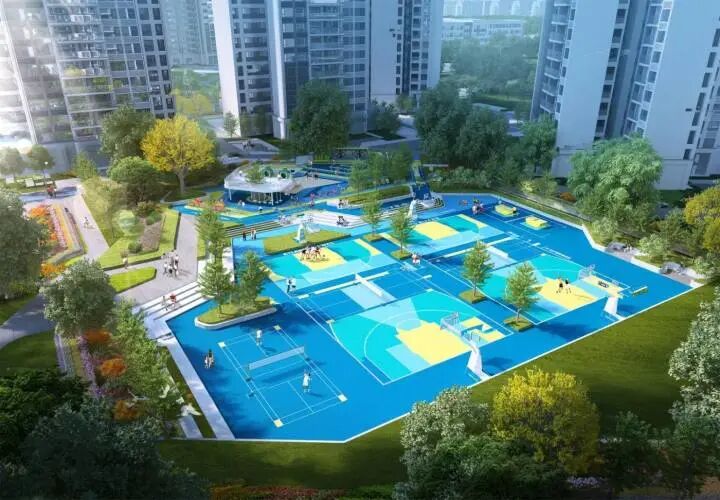 广州佳兆业悦峰项目自配建48班小学,规划有约7.6万㎡双央景园林,约1000㎡下沉式风情泳池以及约2000㎡下沉式运动*,