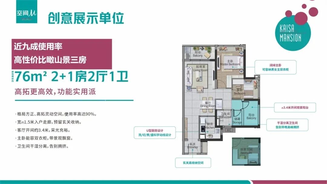 佳兆业悦峰推出建面约76-96㎡三*四房,它有几个特别之处——