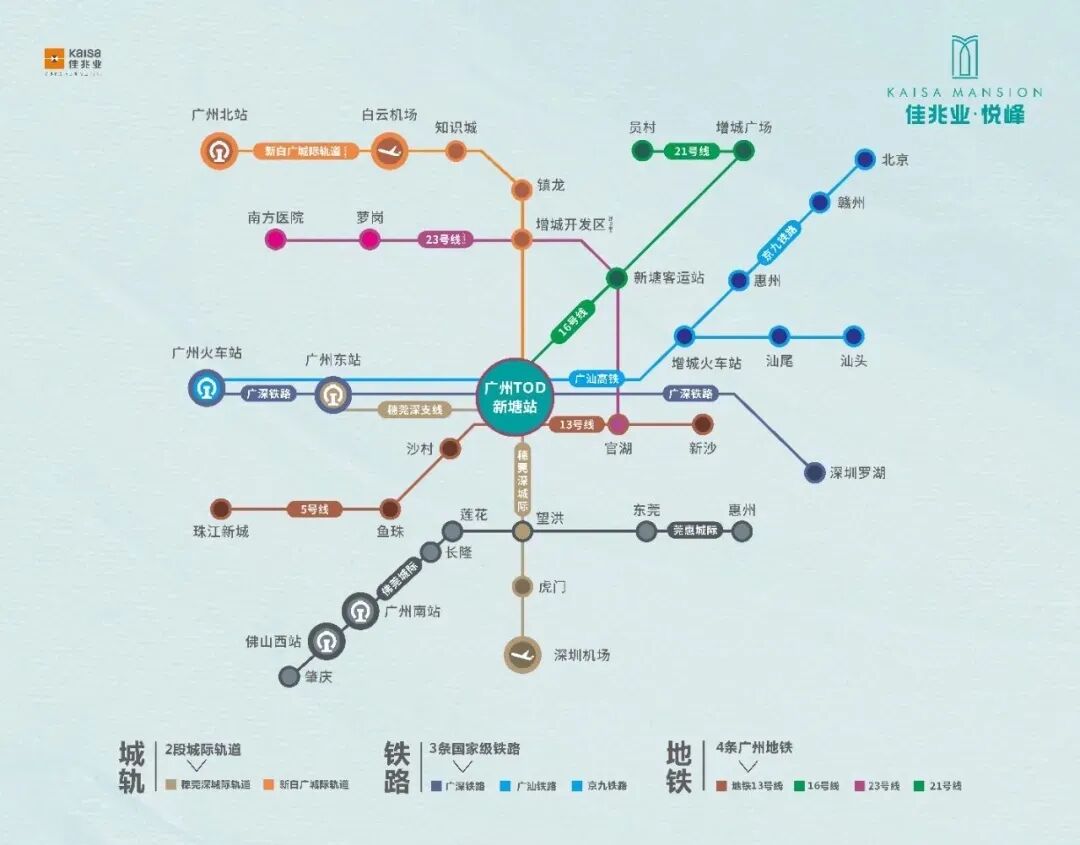 穗莞深城际轨道(已开通),一站达天河,畅通穗莞深;新白广城际(建设中)约20*到达白云机场,直达广深两大机场。