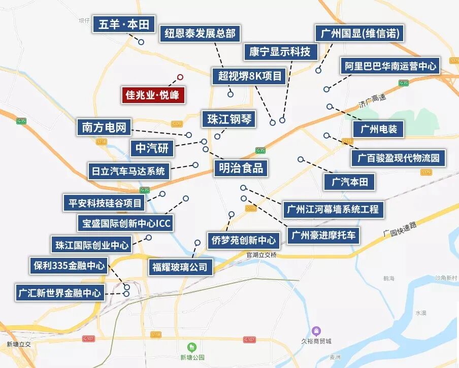 周围新塘万达(已开业)、永旺梦乐城(建设中)、广州合生汇(建设中)、悠方、钧明欢乐世界、光大商业*等。