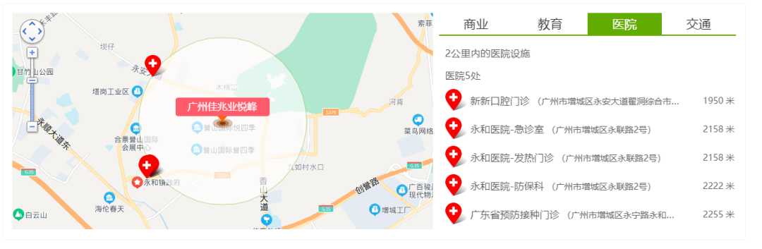 约5*享医疗配套,南方医院增城分院和社区医院永和医院。