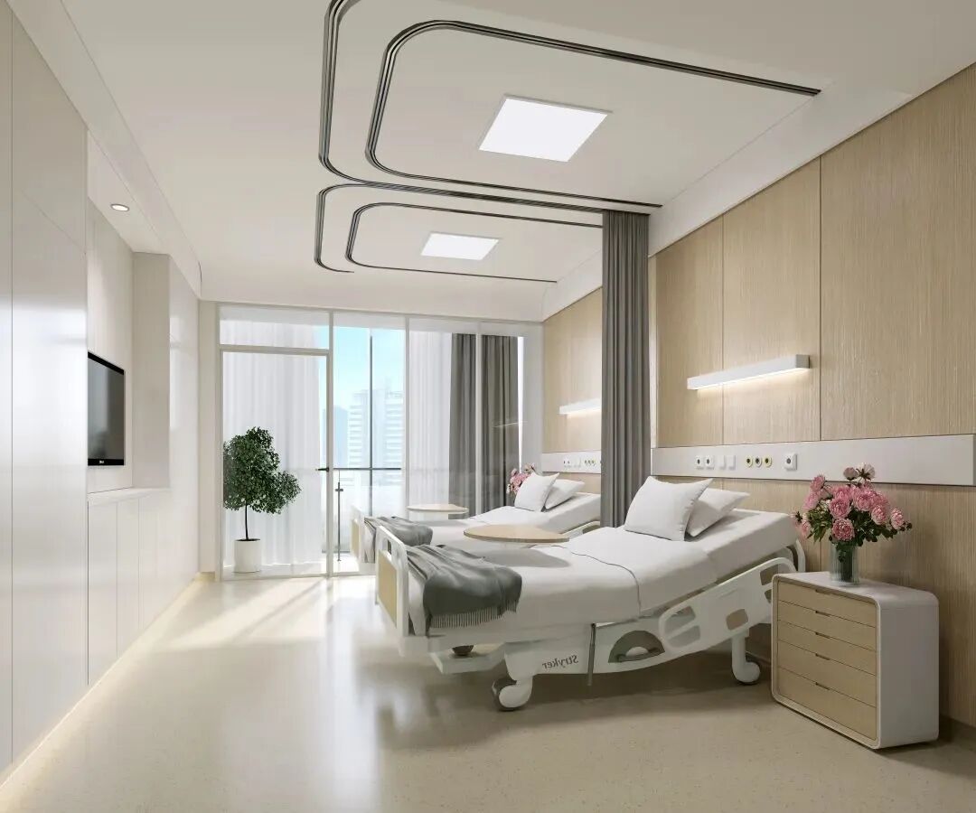 项目自东北*西南分别为门急诊、医技、住院区域,西北为科研楼、行政教学公寓楼和国际医疗楼3栋塔楼,各功能区合理分布,动静明确。