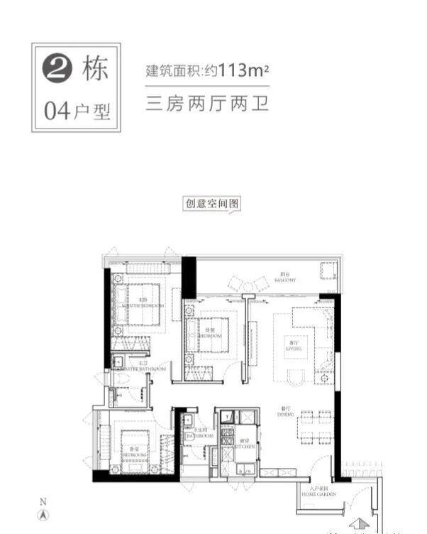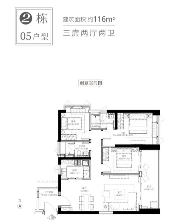 建面约113㎡与116㎡带主套三房
