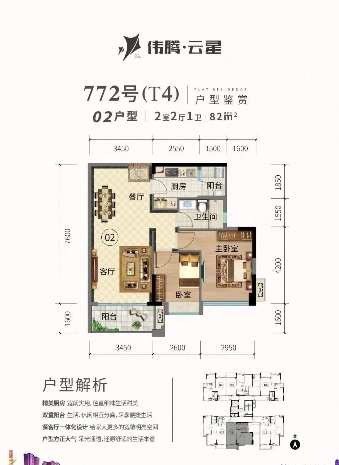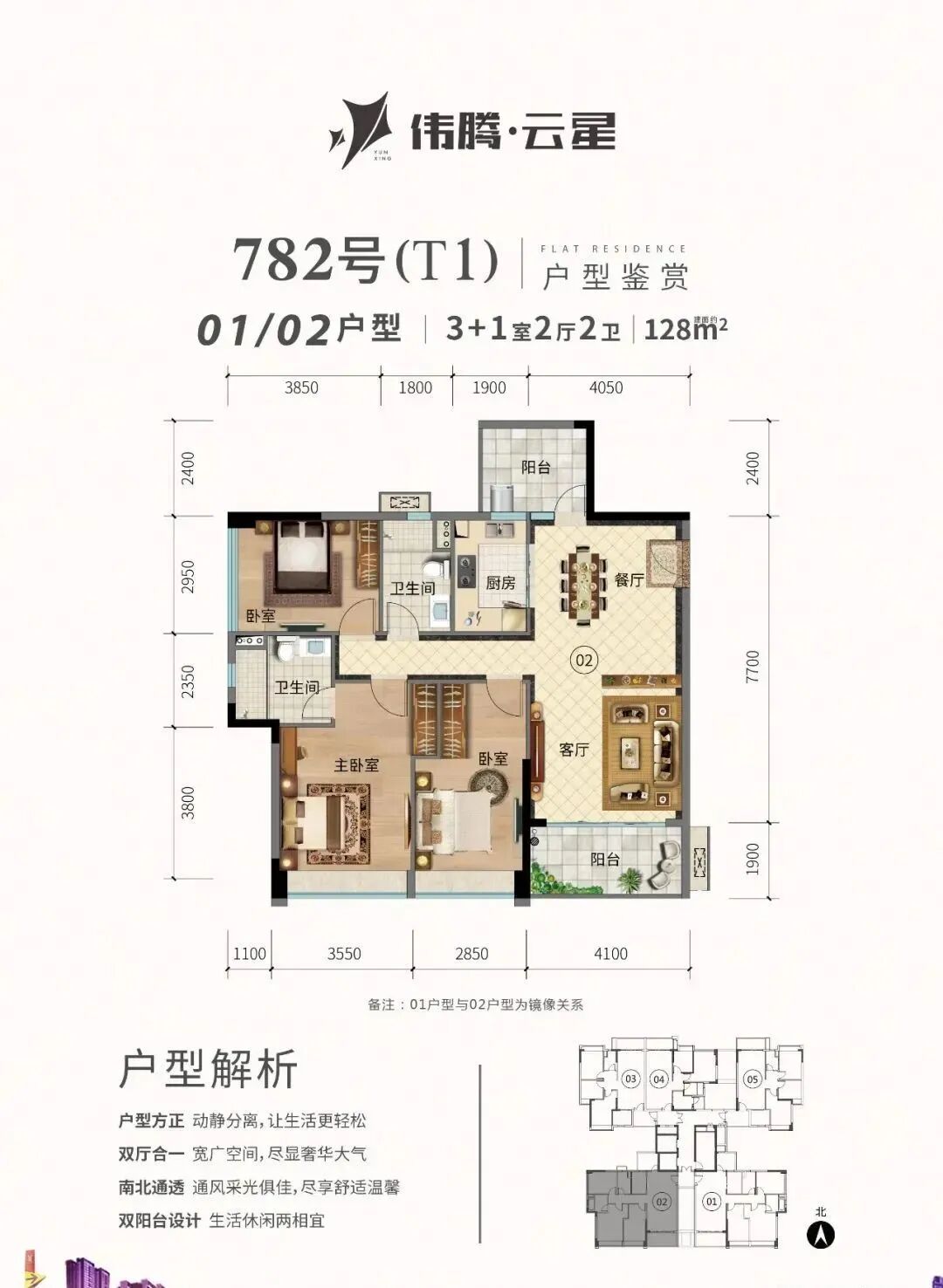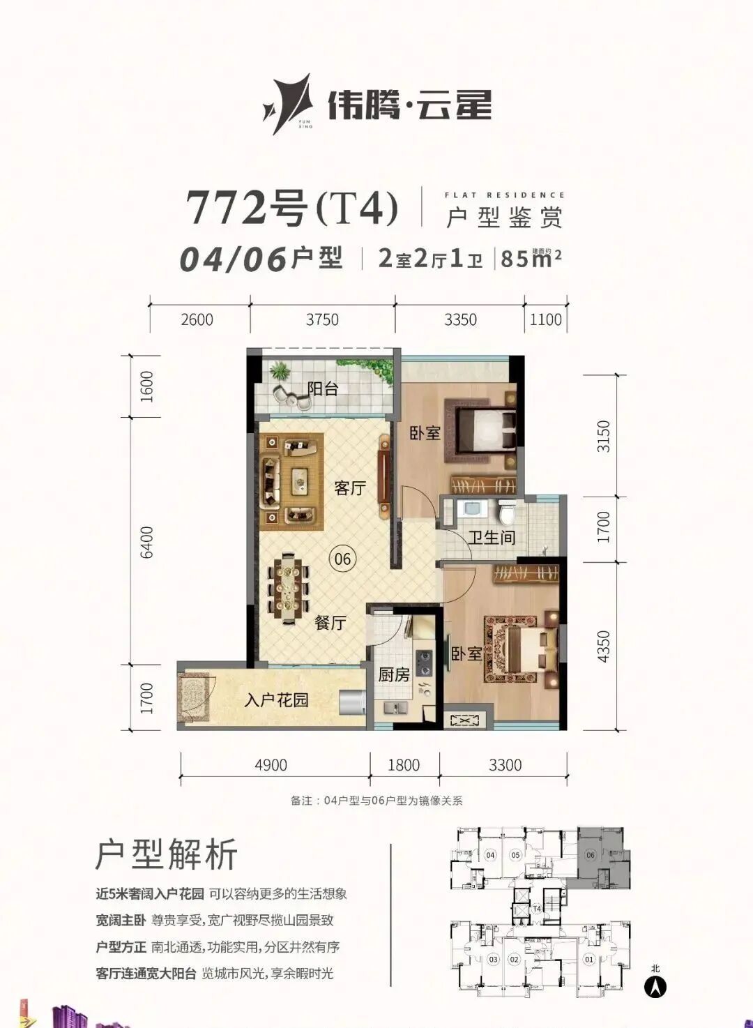 伟腾云星共491户,绿化率35%。施行人车分流伟腾云星2021年12月31日T1、T4号楼交楼。非毛坯交房。户型优点:方正实用,超宽楼距,前后无遮挡,南北对流,大部分赠送入户花园。