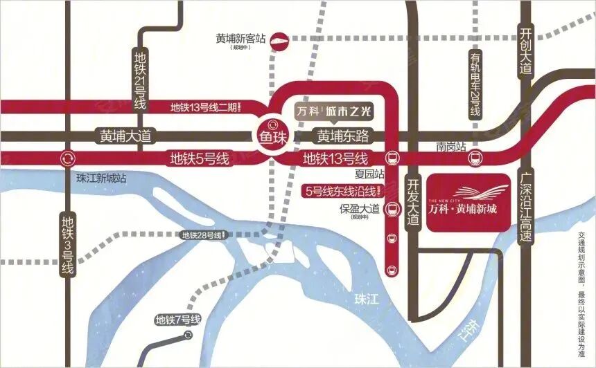 此外,万科黄埔新城西面还有5号线东延段保盈大道站。