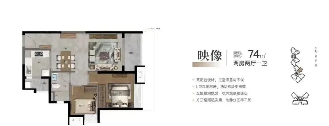 凯德·双桥新作目前有建面约74㎡两房、89㎡三房、98㎡三房、113㎡三房等多个户型,2梯4户或2梯5户。