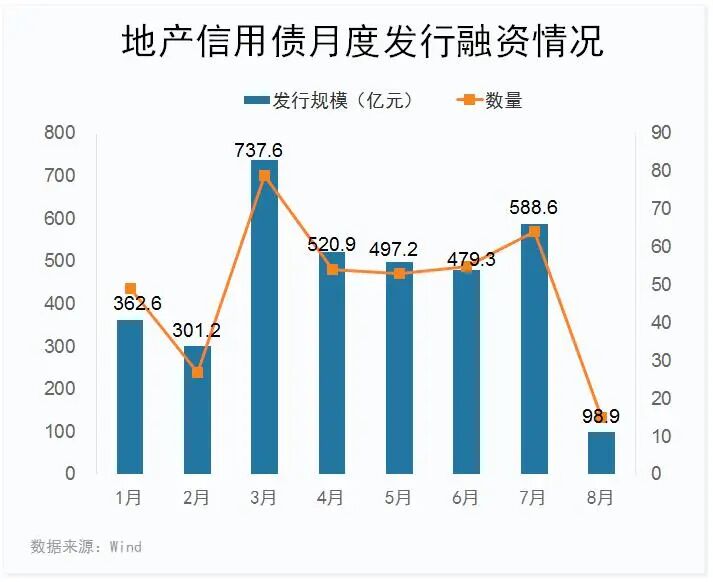 今年以来地产债发行规模不小。Wind数据显示,在政策推动下,今年地产信用债发行已经达400只,其中396只完成募资3586.31亿元,规模较大。