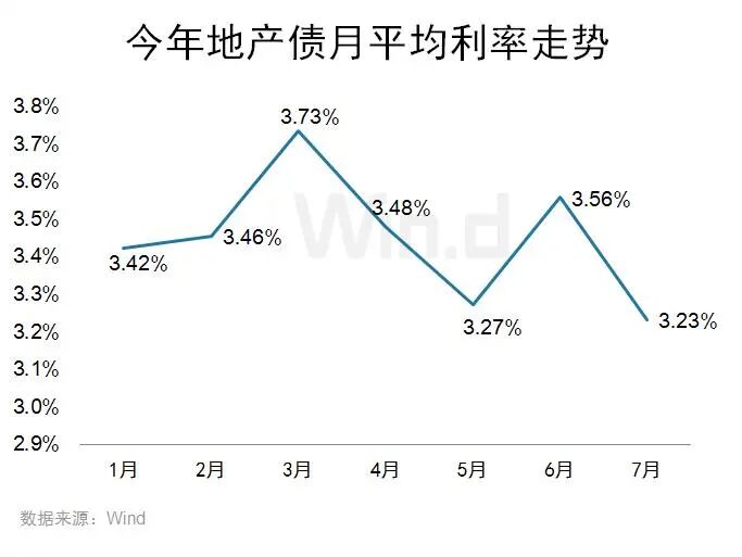 4.市场流动性充裕,7月份房企地产债融资成本创出新低。