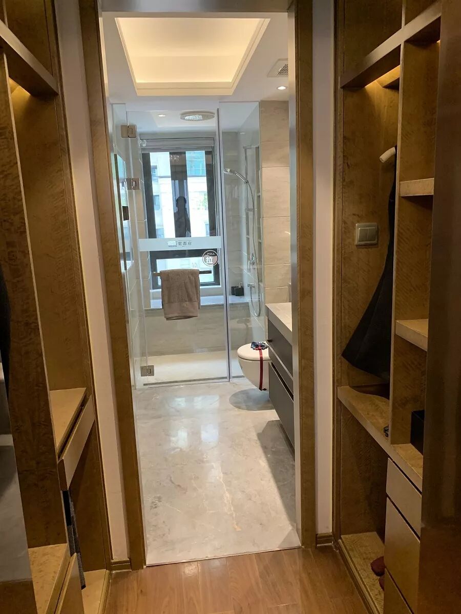 在血拼哥踩盘过程中,发现104㎡的三房,主卧跟儿童房是打通的,据销售介绍,这是创意板房的小细节设计(非交楼标准),主要是可以方便家长随时照看小朋友。