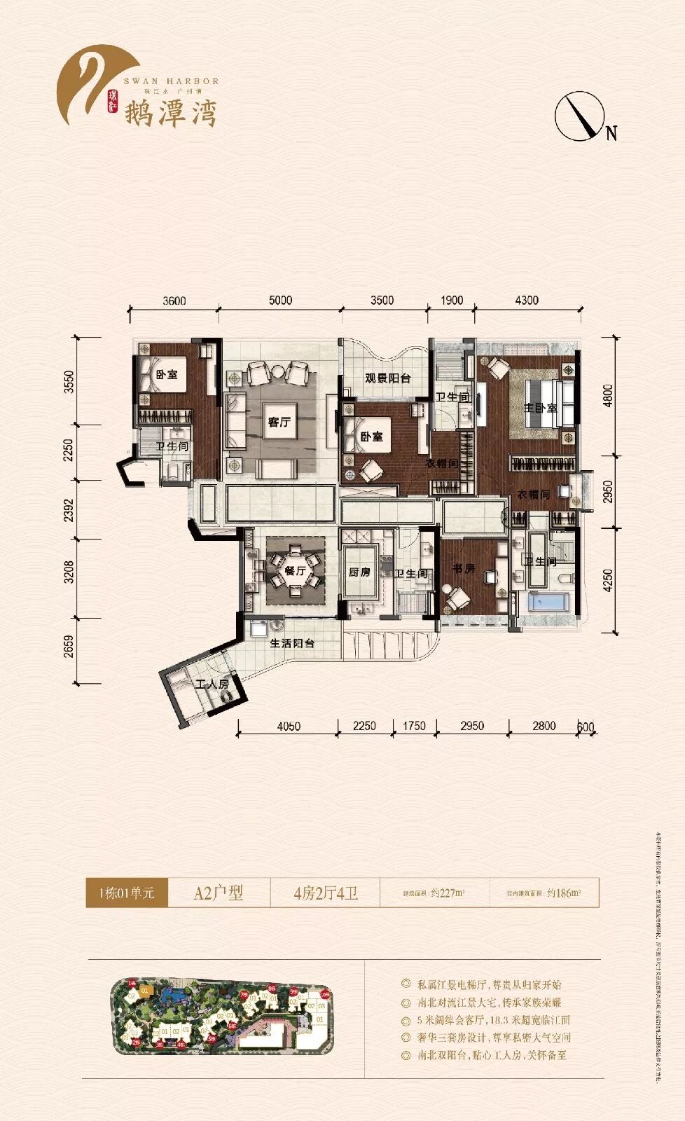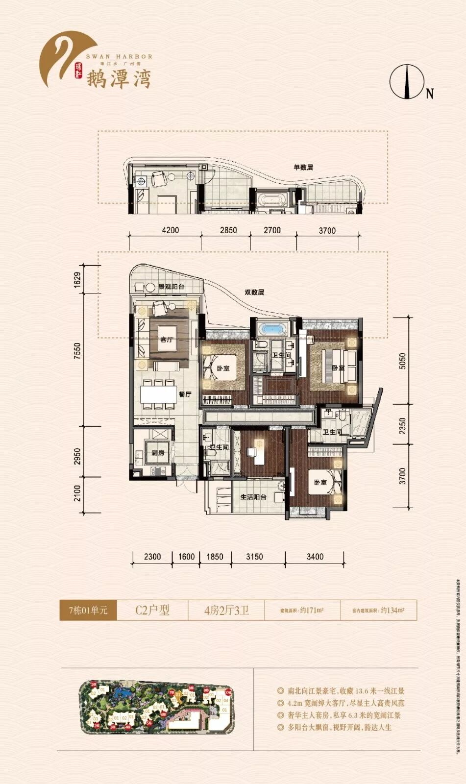 珠江鹅潭湾属一线望江楼盘,三江汇聚江景,100%户户望江, 168㎡四房双套房,230㎡四房三套房,280-380㎡复式单位,充分满足三代人的生活。