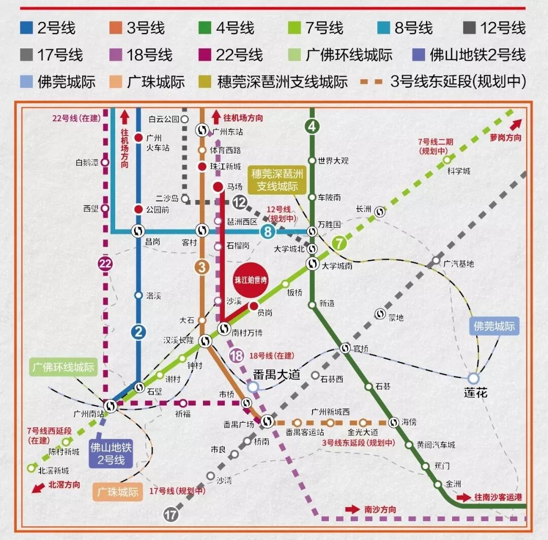 其中,地铁18号线,乃时速高达160公里的高速地铁,于此出发,可以实现3站到琶洲,4站到珠江新城,通勤时间将缩短*十几*。