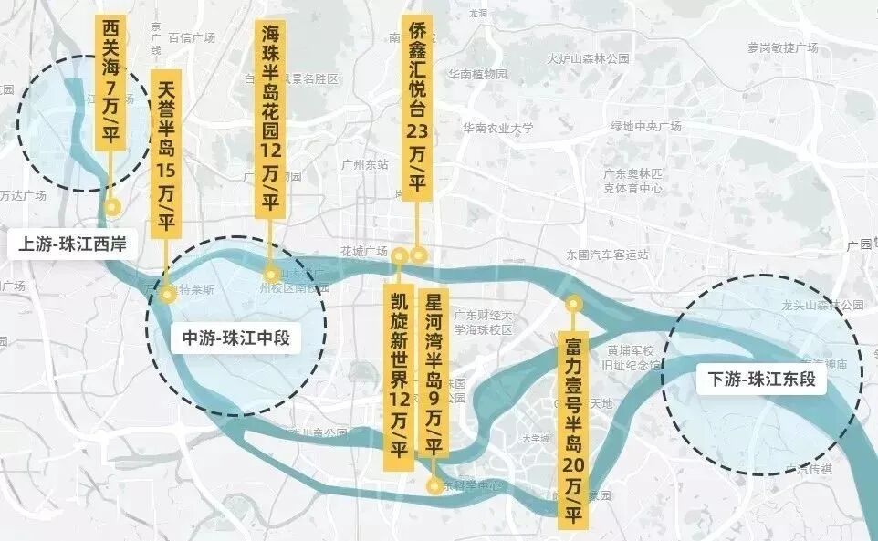 目前,广州城区珠江沿线豪宅,低辄7万/平起步,*高则已冲破23万/平。