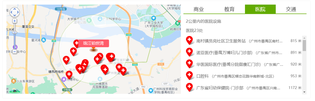 医疗:医院省妇幼保健院番禺院区、广东省中医院(大学城医院)、祈福医院。