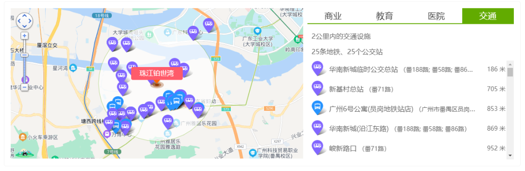 以珠江新城为*,绘制了一张地图。在CBD黄金置业圈内,能同时满足驱车和地铁,都不超过25*的项目,只有12个左右。