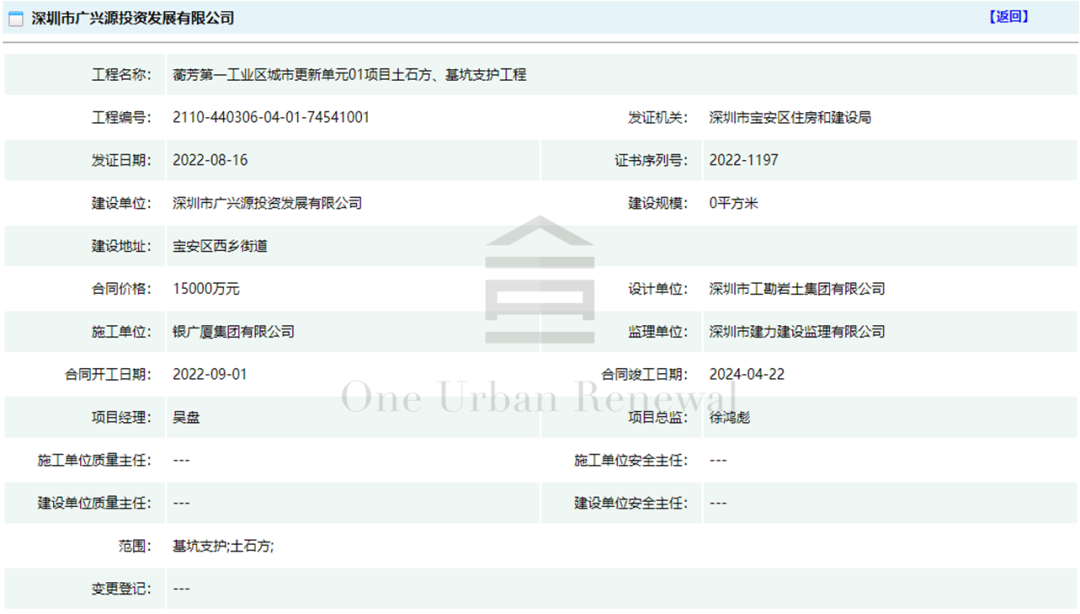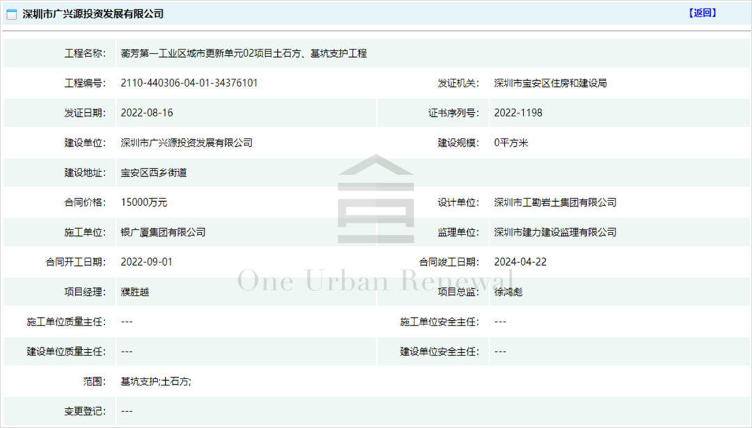 宝安区西乡街道蘅芳*工业区城市更新单元(01项目、02项目)施工许可