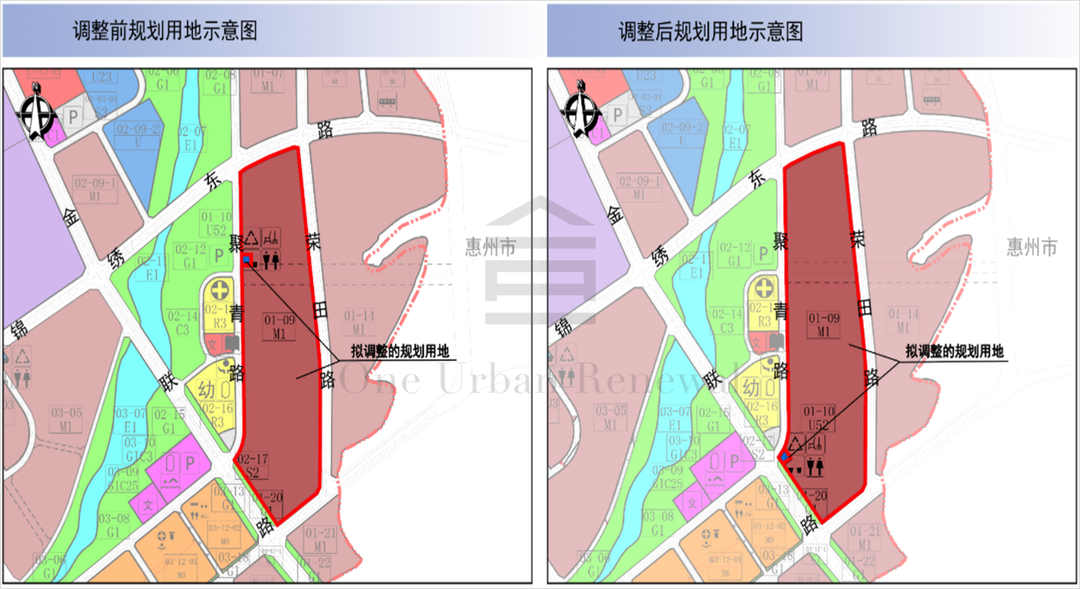 根据[金沙地区]法定图则,01-09地块规划用地面积为154265㎡,规划用地性质为一类工业用地(M1),容积率为2.0-2.2;01-10地块规划用地面积为625㎡,规划用地性质为垃圾处理用地(U52),配套垃圾转运站、公共厕所、再生资源回收点、环卫工人休息站,以上备注均为规划。调整后,01-10地块(垃圾转运站原规划用地)往南调整*金联路与聚青路道路交叉口附近,用地性质由“U52垃圾处理用地”调整为“U5环境卫生设施用地”,用地面积及其他用地指标维持不变;01-09地块的用地形状相应调整,用地性质、用地面积及其余指标维持不变。