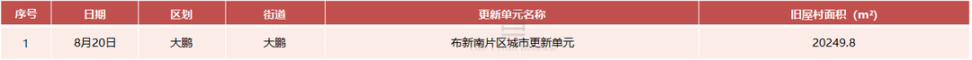 大鹏新区大鹏街道办事处布新南片区城市更新单元旧屋村范围公示