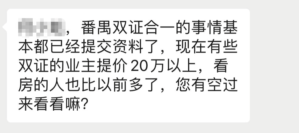 番禺双证房一旦合一,对以上社区业主会带来诸多利好:名额、流通性、价格等都将回到正常的赛道。