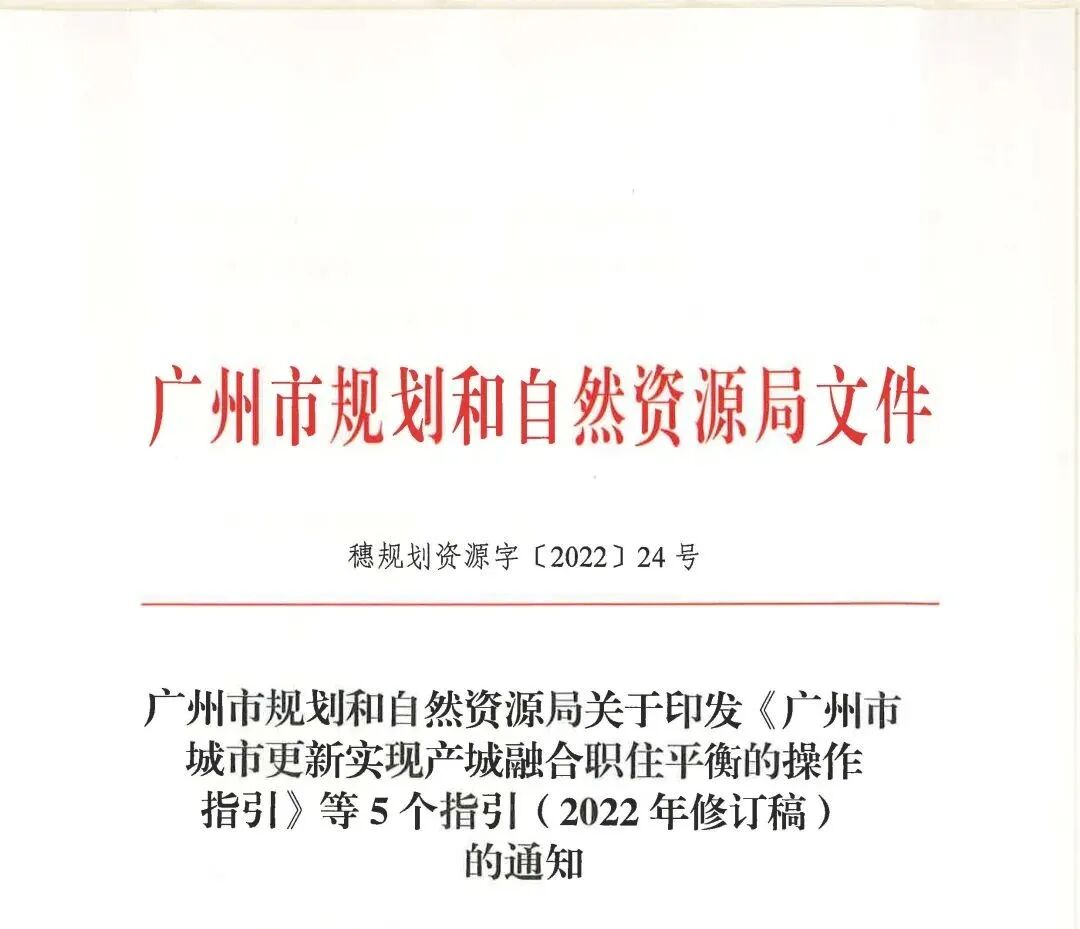 《广州市城市更新实现产城融合职住平衡的操作指引》等5个指引(2022年修订稿)