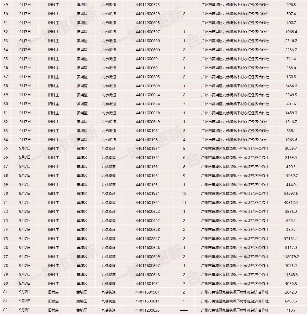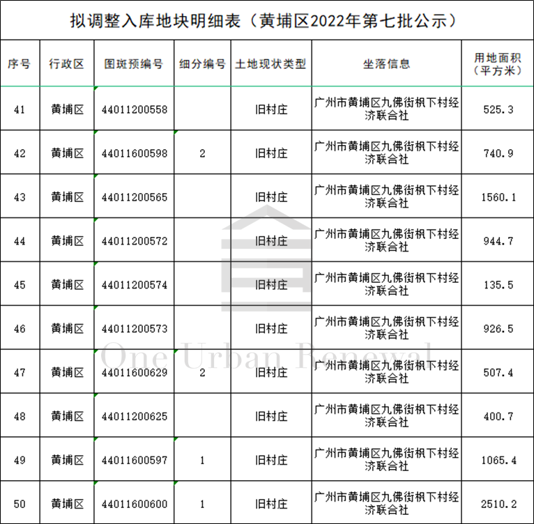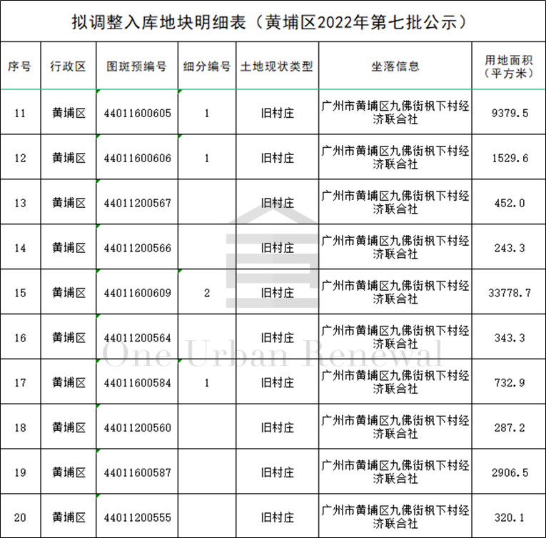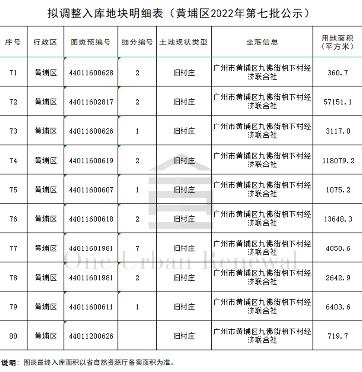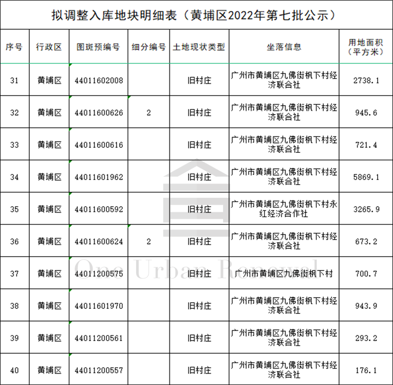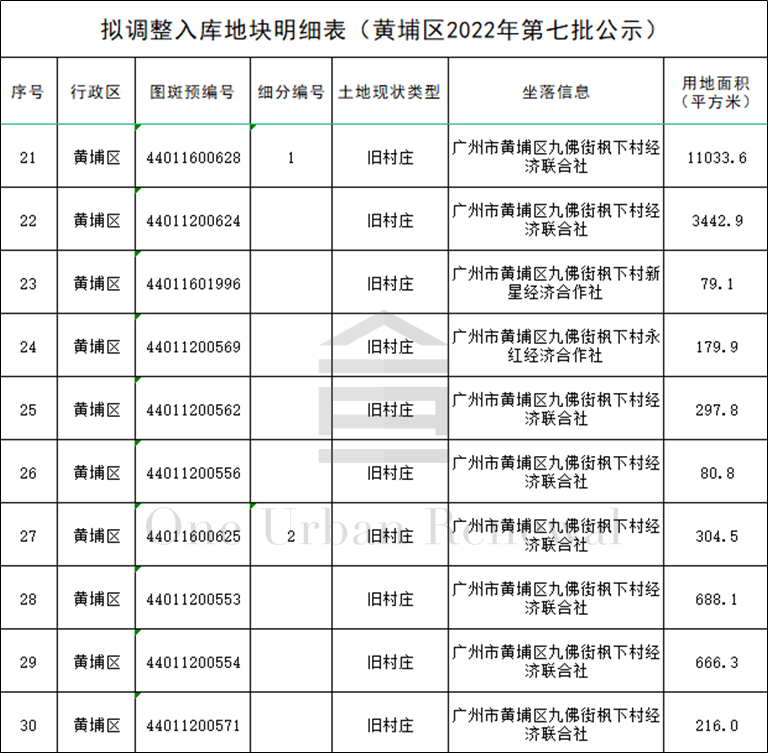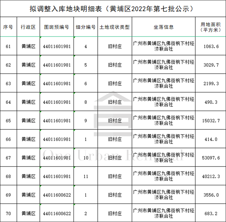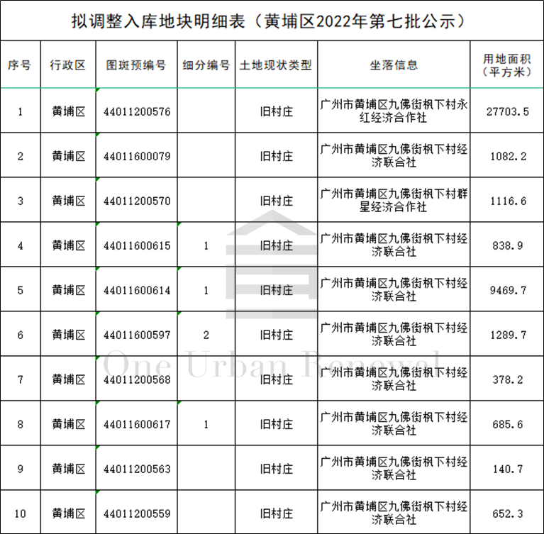 广州市黄埔区2022年第七批“三旧”改造地块标图建库动态调整成果