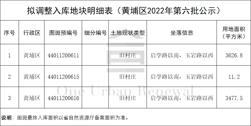 广州市黄埔区2022年第六批“三旧”改造地块标图建库动态调整成果