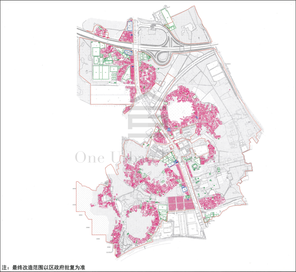 现状建筑面积:改造范围内现状建筑面积总计1100267.9㎡,现状物业栋数共计2636栋。其中:村户籍人口及世居居民物业共2465栋,建筑面积941123.9㎡;其他非村民人口现状物业共22栋,建筑面积6113.1㎡;集体物业共138栋,建筑面积124036.4㎡;国有建筑共11栋,建筑面积28994.6㎡