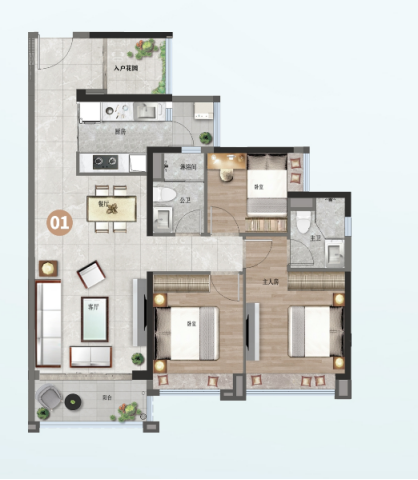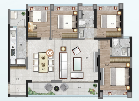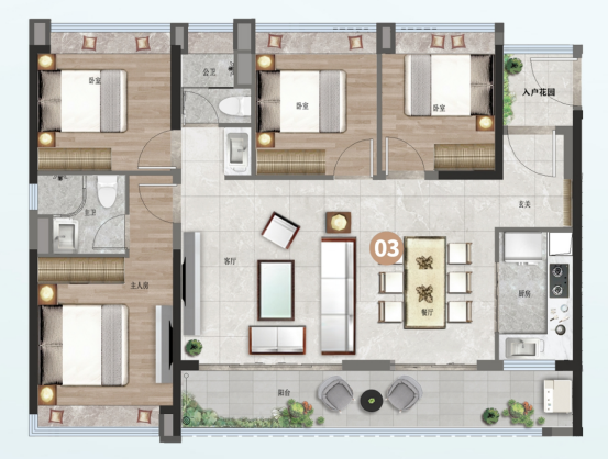 90-119㎡三四房灵活百变,双阳台配置。82-83%超高实用率,满足全家人的需求。