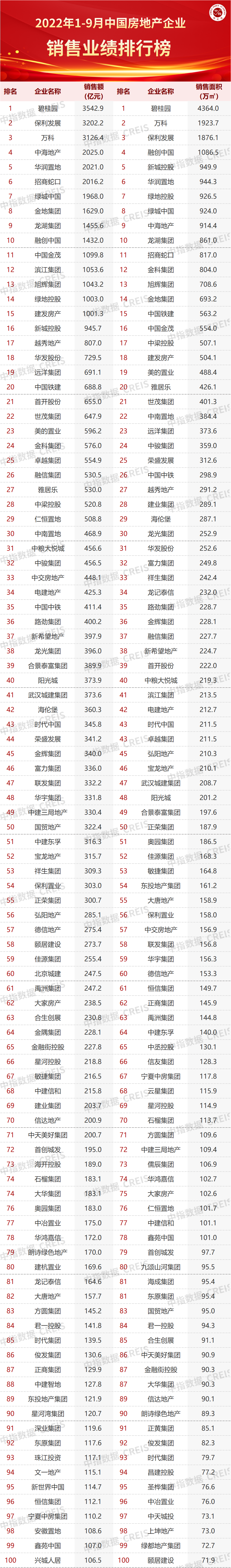 传统“金九银十”销售旺季来临,百强房企9月销售额再度反弹回升,但*城市成交不及预期,楼市继续保持筑底行情。据克而瑞数据显示,9月*100房企单月销售操盘金额5709.6亿元,规模环比增长10%,虽然同比仍降低25.4%,但降幅较前几月有进一步收窄。从今年前三季度的累计业绩来看,百强房企各个季度的整体业绩规模均保持在低位。百强房企1-9月累计销售操盘金额46697.9亿元,同比降幅约45.4%。规模房企表现分化明显,从环比来看,9月有超半数百强房企实现单月业绩环比增长,其中25家企业环比增幅超过30%,如华润置地、招商蛇口、绿地、越秀、仁恒等企业的环比增幅均在35%以上。但9月单月业绩同比去年降低的企业数量有近7成,另外3成企业实现了单月业绩同比增长。9月份的房地产市场延续筑底行情,30个*城市供应量环比增长15%,如长沙、南京等城市多个纯新盘集中入市,推盘环比翻番。今年前三季度成交面积累计同比下降43%。一线城市韧性较强,同环比增幅分别达16%和13%;二三线环比涨跌参半,福州、厦门、南宁等成交底部回升,合肥、成都、西安等前期高热城市增长动能转弱,9月出台了纾困政策的城市诸如天津、青岛、济南、宁波等,成交尚未出现明显好转。据中指研究院统计,今年三季度,*100城新建商品住宅成交面积同比降幅近3成,成交规模为2015年以来同期*低水平。中指研究院数据显示,1-9月销售额超千亿房企15家,较去年同期减少12家;超百亿房企100家,较去年同期减少48家。*100房企权益销售额均值为386.8亿元,权益销售面积均值为253.6万平方米,同比分别下降46.9%和50.5%。其中,销售额进入3000亿级别的房企只有前三甲,碧桂园累计销售额3542.9亿元、保利发展3202.2亿元、万科3126.4亿元。但从9月业绩看,保利发展单月销售额达到412亿元,以较大*超过碧桂园(336亿元)和万科(346亿元)。从百强房企销售额均值来看,9月份市场呈现弱复苏迹象。中指研究院企业事业部研究负责人刘水分析称,2022年1-9月,*100房企销售额均值为540.8亿元,同比下降45.1%,降幅较上月收窄1.1个百分点,*100房企销售降幅已经是连续4个月收窄,呈现弱复苏。弱复苏的信号也在融资端有所显露。9月份,房企无海外债发行,仅通过发行信用债进行融资。1-9月,房企信用债发行规模为368.05亿元,受上年同期发行大幅下降影响,同比上升10.6%。从融资成本来看,信用债融资成本有小幅下降,平均利率为3.21%,环比下降0.16个百分点。今年以来,大部分房企选择不公开披露销售目标,或是已经主动调降了全年目标。据机构统计,多数公开披露年度目标的规模上市房企目标完成率不足60%,不少房企甚*不足50%。四季度房企货值供应、销售去化压力会进一步放大。对于即将到来的四季度,克而瑞认为,*及地方需求端政策力度有望加码,在轮番政策暖风的作用下,市场信心或将逐渐恢复,房地产市场也将逐步回稳。克而瑞分析认为,在这种回暖预期中,城市分化会进一步加剧。上海、杭州等市场热度有望惯性延续,成交或将高位保持;广州、深圳、苏州等一线及强二线市场或将持续修复;南宁、沈阳、昆明等弱二线城市有望企稳。