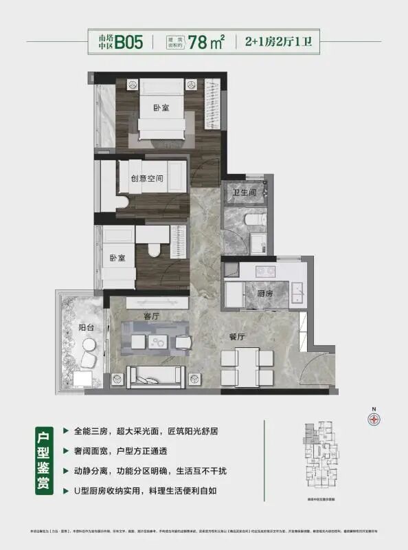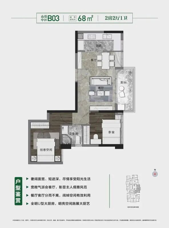 项目主推约68-134平二*四房,吹风6万+/平。尽管预计单价不低,但约68-78平等户型能以小面积控制总价,在门槛上也有所拉低。