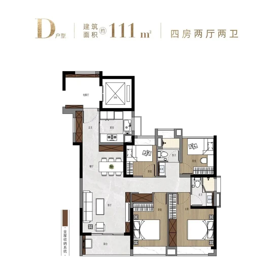 88-111㎡三*四房,充分利用有限的空间,赋予室内更多实用功能,百变灵动户型,满足不同家庭的功能需求,市区仅有的小尺度豪宅!