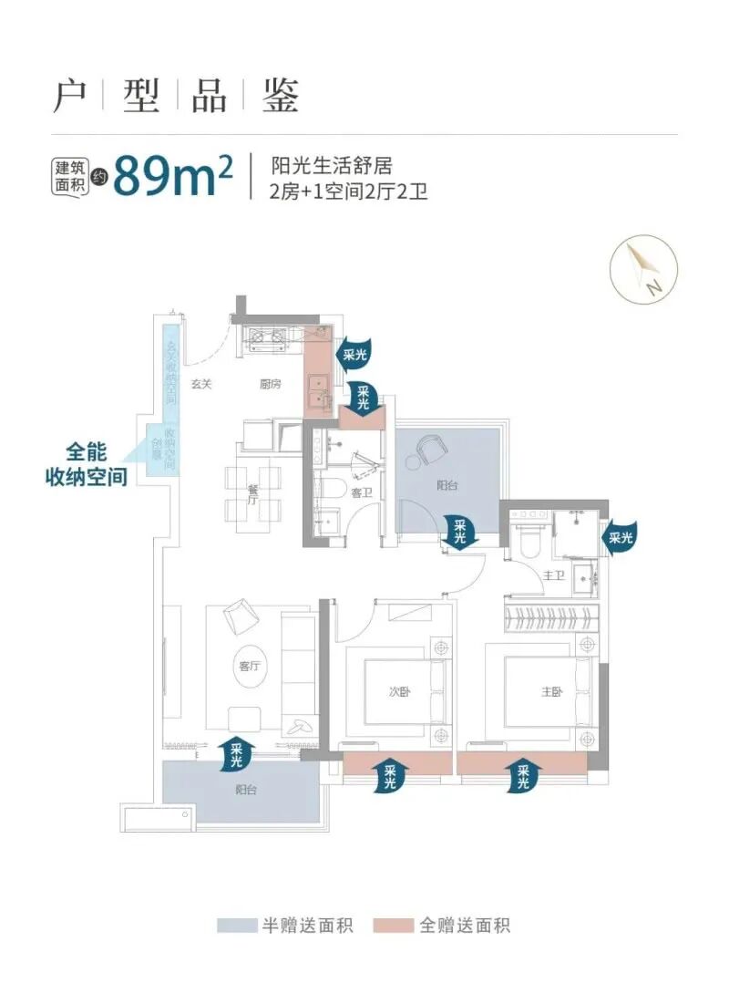 同时89㎡产品做到两卫设计,比片区内同等面积产品多一卫,生活私密度更高。